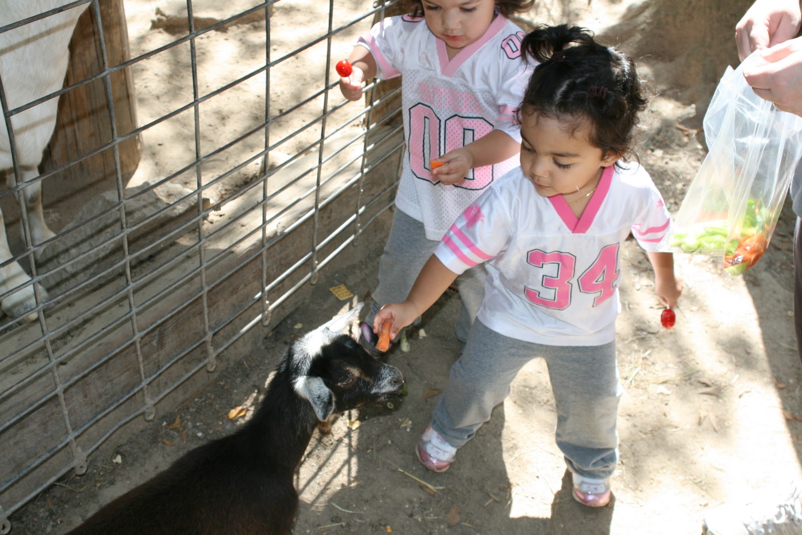 Last weekend we found this great little petting zoo about 30 minutes from home. Since Bubby was home for the weekend we wanted to go out and took all of the kids there. The girls LOVED it! Recently they're so into saying all of the animals and the sounds they make. This happens to be one of the favorites, the "moo cows". And yes they are sporting Carolina Panthers jerseys. They are after all Carolina girls, so cute!