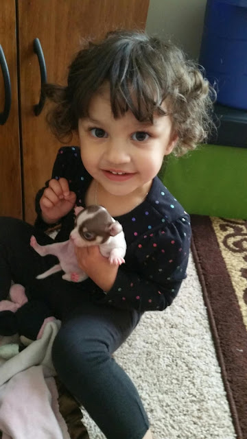After 7 years Twinkle had her first puppy. It's a boy! All 3 of the girls are in love with him ;-)